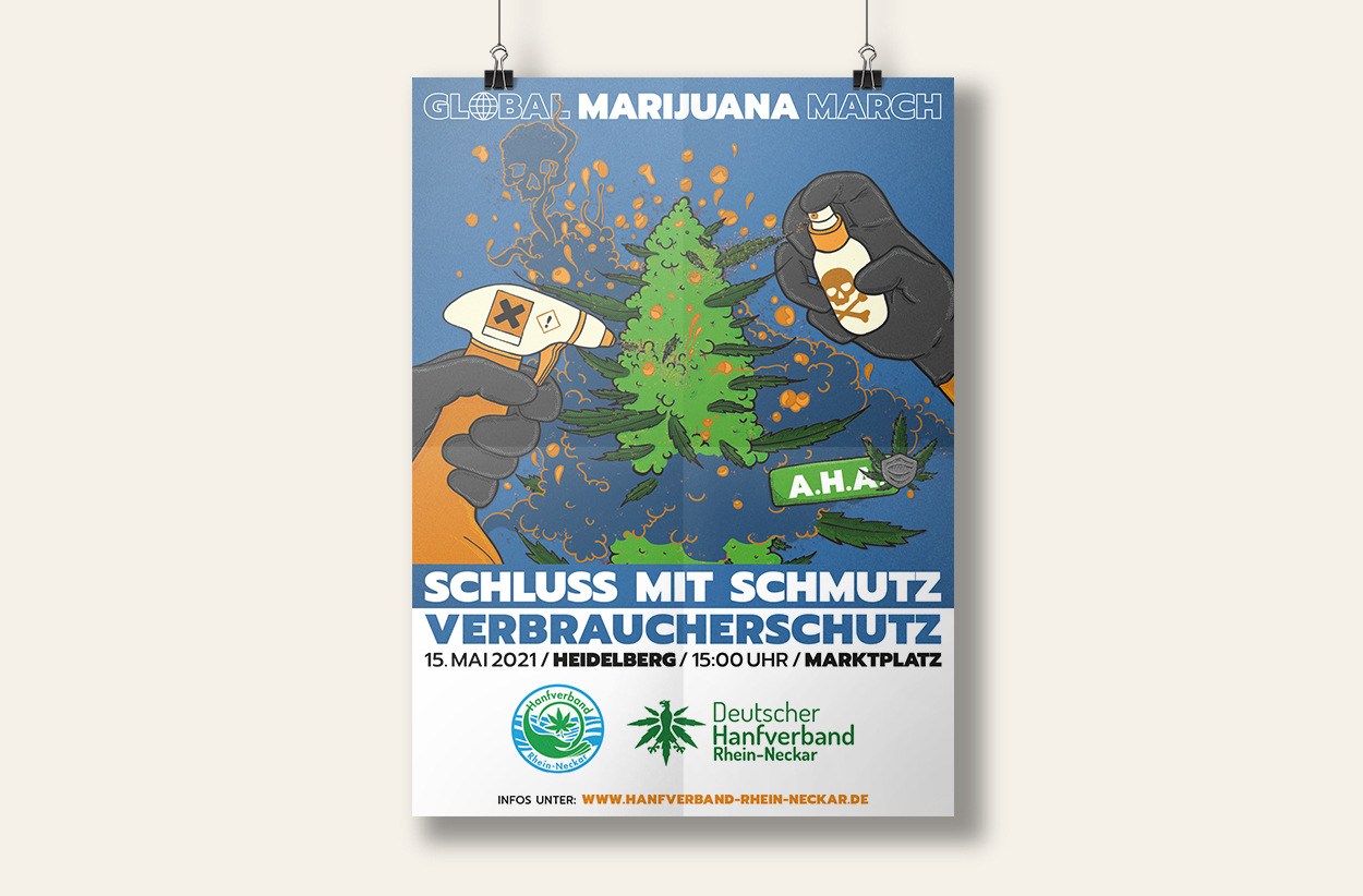 in 2021 hat mich der „dhv – deutscher hanfverband“ gebeten ein neues logo für ihre jährliche demonstration den „global marijuana march“ zu erstellen. es wurden zwei varianten für unterschiedliche nutzungen in verschiedenen medien benötigt, print und digital.