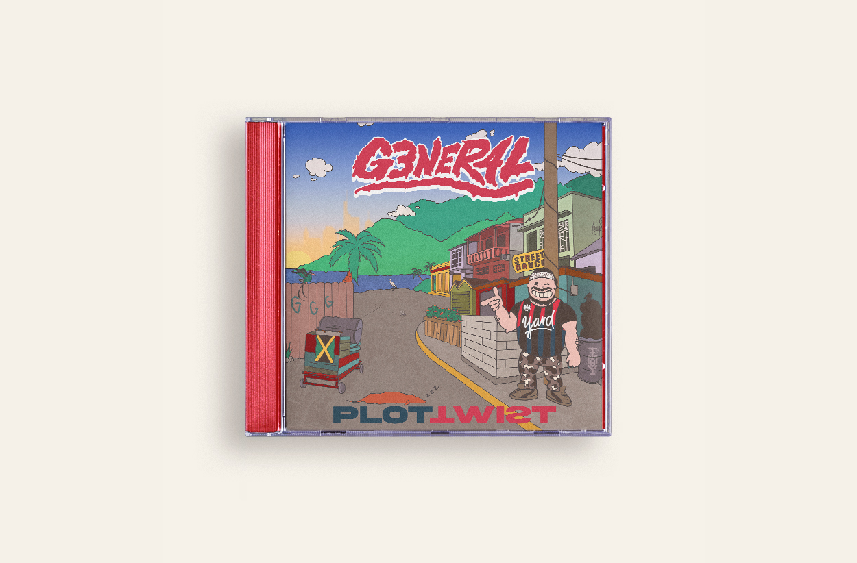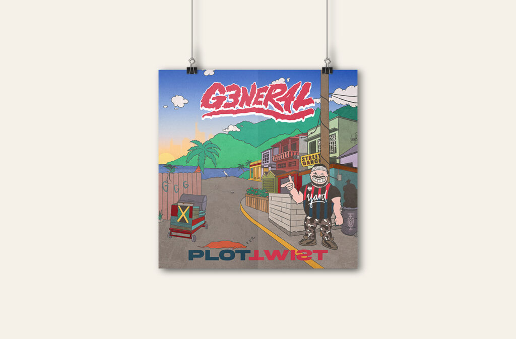 g3ner4l ist ein deutscher dancehall artist aus frankfurt und kingston. zu seinem aktuellen release bat er mich um die erstellung eines neuen artist logos und einer illustration für sein kommendes album „plottwist“. neben den illustrationen habe ich mich ebenfalls um die zum album zugehörigen visualizer für seinen youtube kanal und ein lyric-video gekümmert.